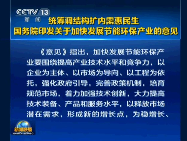 各省、自治區(qū)、直轄市人民政府,國務院各部委、各直屬機構: 資源環(huán)境制約是當前我國經(jīng)濟社會發(fā)展面臨的突出矛盾。解決節(jié)能環(huán)保問題,是擴內(nèi)需、穩(wěn)增長、調(diào)結構,打造中國經(jīng)濟升級版的一項重要而緊迫的任務。加快發(fā)展節(jié)..