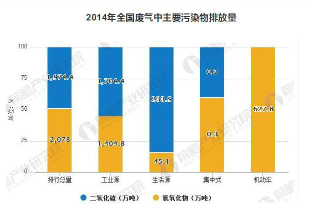根據(jù)中國(guó)歷年環(huán)境統(tǒng)計(jì)公報(bào)數(shù)據(jù), 雖然近年來(lái)主要大氣污染物排放量有所下降,但排放量依然巨大,2014 年二氧化硫、氮氧化物排放總量分別為 1,974.4萬(wàn)噸、2,078.0 萬(wàn)噸,其中電力、鋼鐵、造紙、印染等行業(yè)是二氧化硫及氮氧化物的主要工業(yè)排放源。