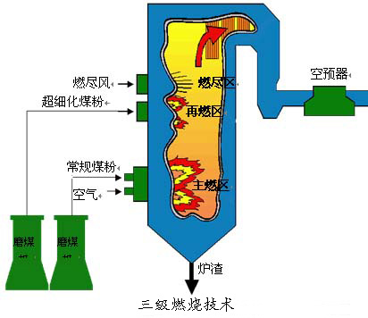 3、通過(guò)空氣和燃料分級(jí)送人鍋爐爐膛內(nèi),是主燃區(qū)形成還原性氣氛,在抑塵氮氧化物生成的同時(shí),還可以還原已生成的氮氧化物,如三級(jí)燃燒技術(shù)等,脫硝效率達(dá)60%以上。